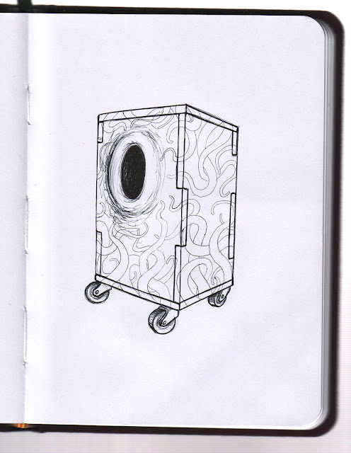 This small drawing from my pocket sketchbook was made early on when I first thought about starting the Orifice Box series. Unlike the Horned God and Frankenstein’s Orifice Boxes this is to be left plain except for an external drawing decoration. I have yet to start this one though.